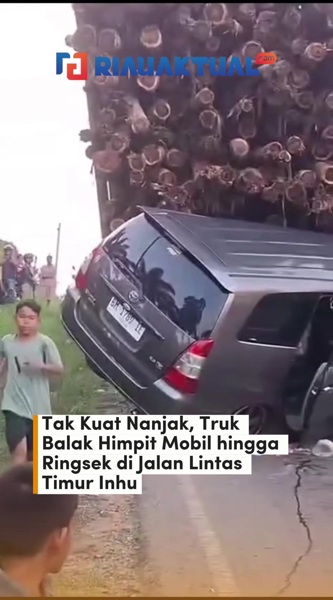 Video Tak Kuat Nanjak, Truk Balak Himpit Mobil hingga Ringsek di Jalan Lintas Timur Inhu 21 April 2026