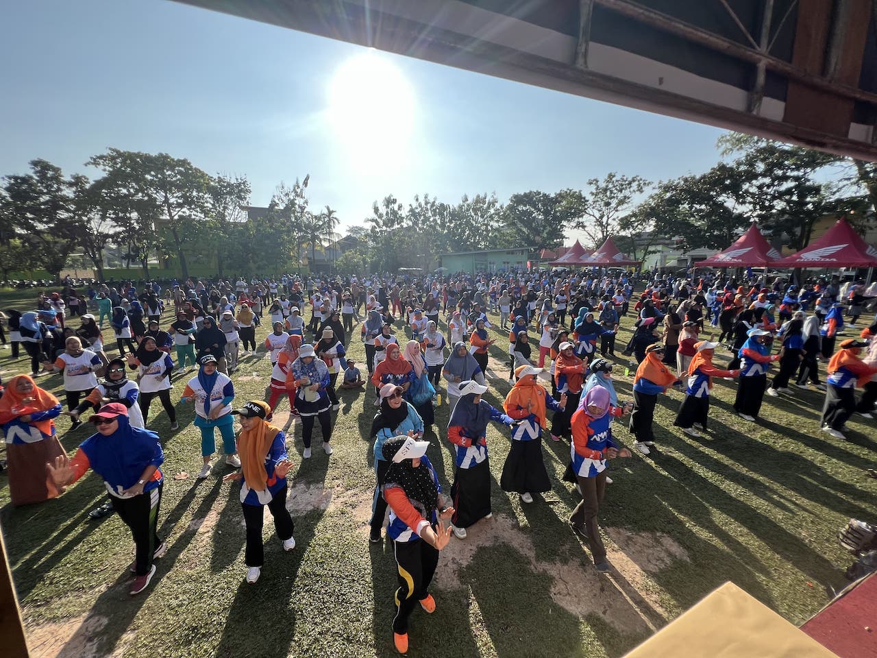 PEKANBARU (RA) - Ribuan masyarakat mengikuti kegiatan Senam Sehat Pekanbaru AMAn yang diselenggarakan oleh pasangan calon Wali Kota dan Wakil Wali Kota Pekanbaru, Agung Nugroho dan Markarius Anwar, di Lapangan Bola Kaki, Jalan Marsan Sejahtera, Kelurahan Sidomulyo Barat, Kecamatan Tuah Madani, Minggu (3/11/2024).