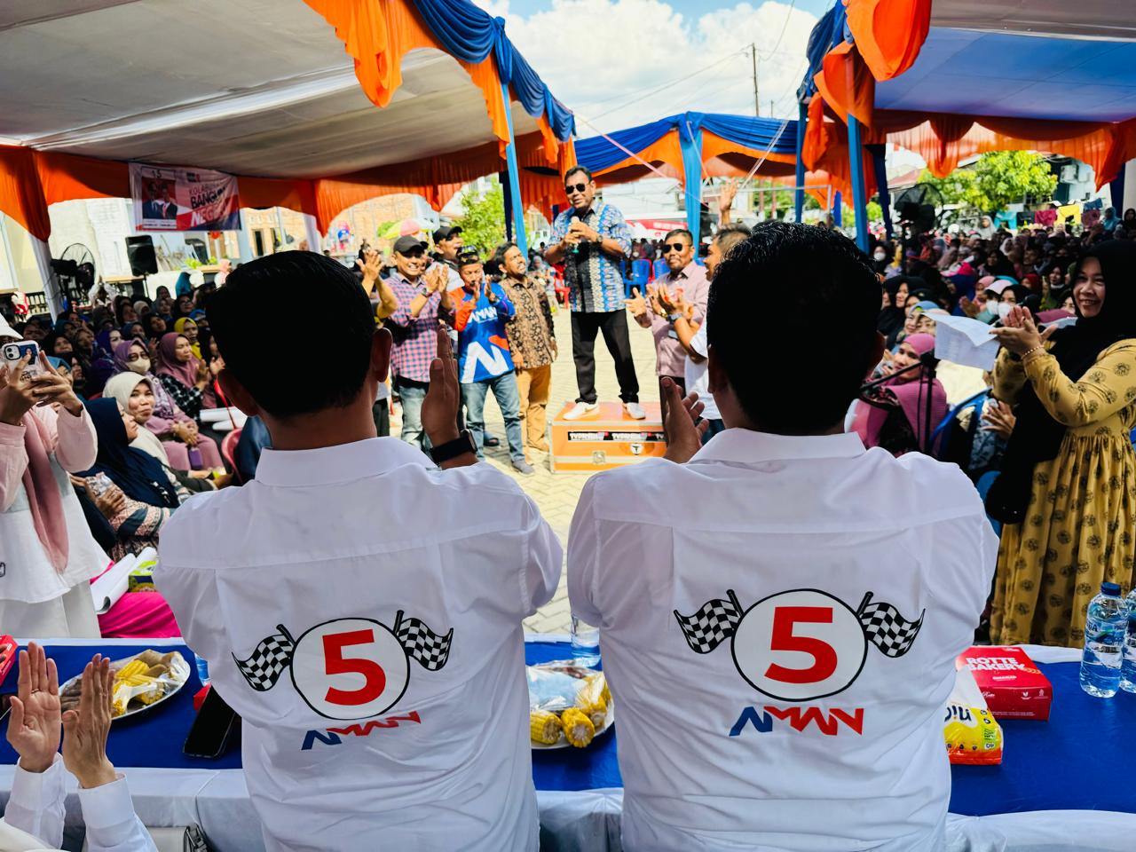 Meski panas terik matahari terasa menyengat, antusiasme warga untuk bertemu pasangan calon idaman mereka tak surut. Kedatangan Paslon AMAn disambut meriah oleh warga dengan nyanyian dukungan “Coblos Nomor Lima.”