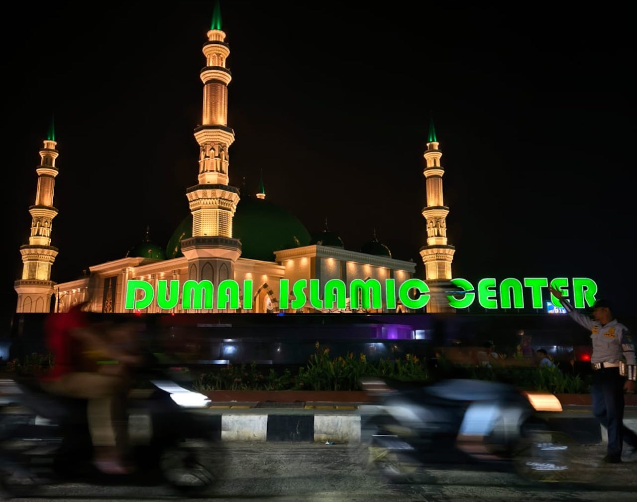 Masjid Dumai Islamic Centre (DIC) di pusat Kota Dumai. Masjid ini, menjadi ikon wisata religi di pesisir Riau, diresmikan tahun 2023 dengan perpaduan arsitektur Islam modern yang mirip dengan Masjid Nabawi. DIC mampu menampung sebanyak 2.000 jamaah.