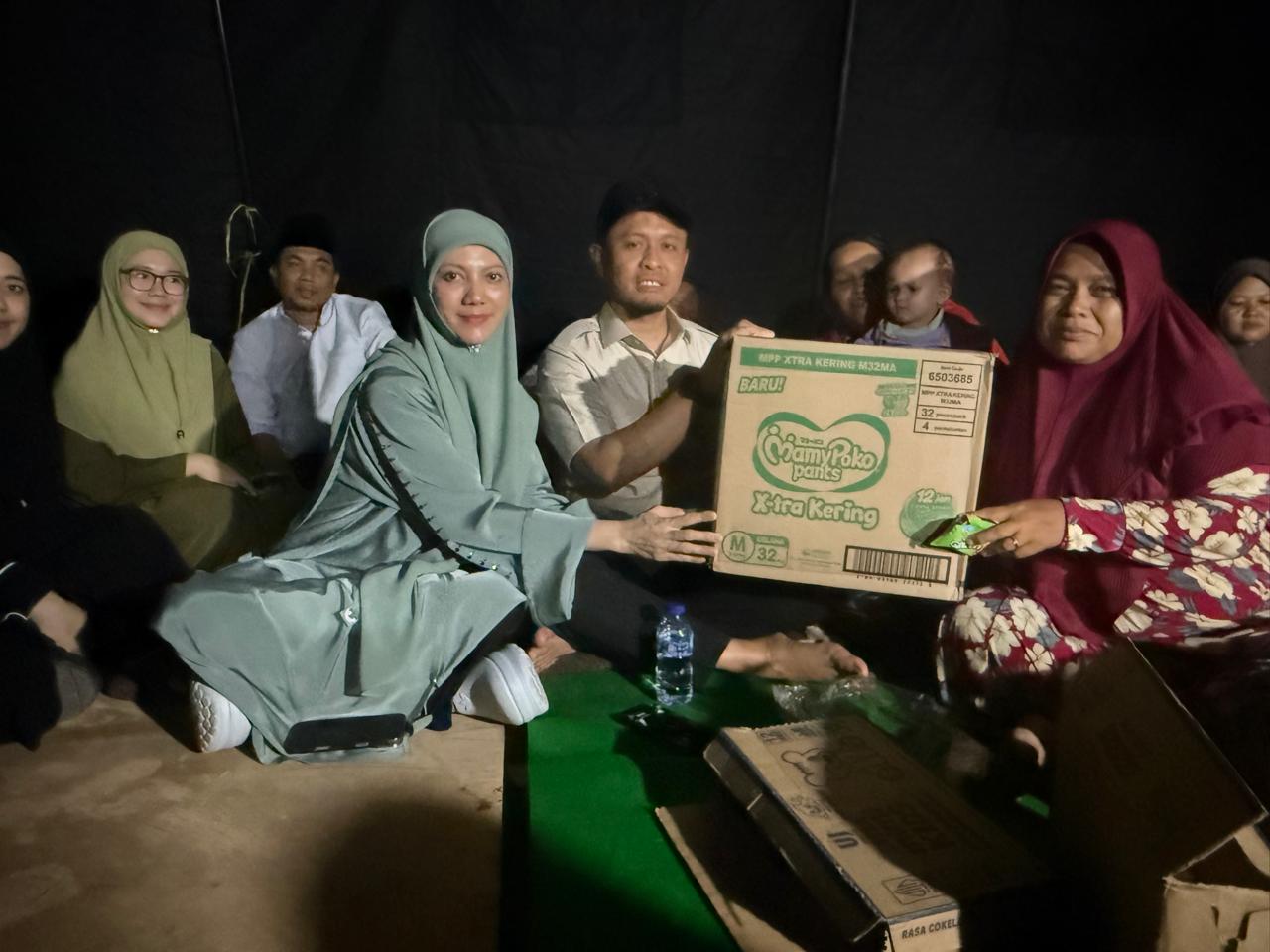 Agung terlihat berdialog langsung dengan warga korban banjir. Ia tampak menenangkan warga di tenda pengungsian pada malam ke 5 bencana tersebut.