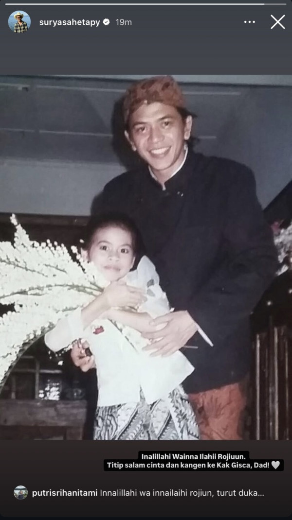 "Innalillahi wa inna ilaihi raji’un. Selamat jalan, Ayah! @raysahetapy. We always cherish the memories of our time with you," tulis Surya di akun Instagram-nya, @suryasahetapy.