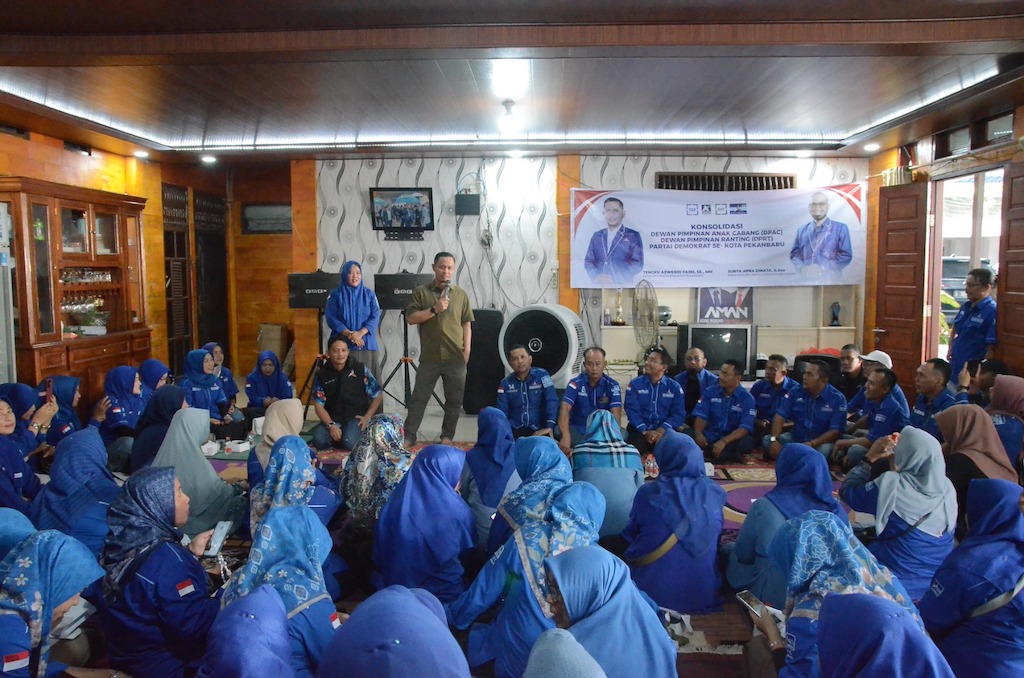 PEKANBARU (RA) - Dewan Pimpinan Cabang (DPC) Partai Demokrat Kota Pekanbaru terus melakukan konsolidasi dan penguatan struktur internal partai di 15 kecamatan se-Kota Pekanbaru. Kegiatan ini dimulai sejak Sabtu, 26 April 2025 dan ditargetkan selesai dalam satu bulan ke depan.