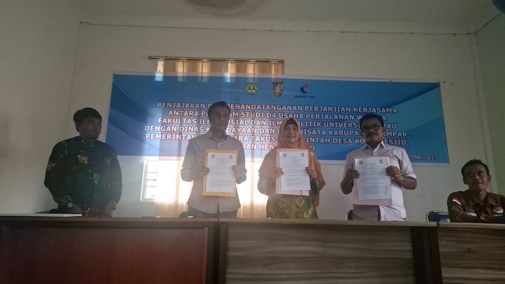 Dalam rangkaian kegiatan, dilaksanakan penandatanganan perjanjian kerjasama antara Program Studi UPW Universitas Riau dengan Dinas Pariwisata Kampar dan pengelola destinasi.