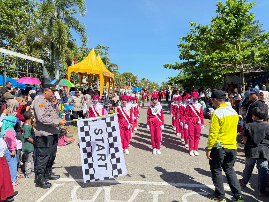 Polsek Tanah Putih Tanjung Melawan (TPTM), menggelar perlombaan Peraturan Baris Berbaris (PBB) di Jalan Tugu, Kelurahan Melayu Besar, Kecamatan TPTM, Senin (11/8/2025).
