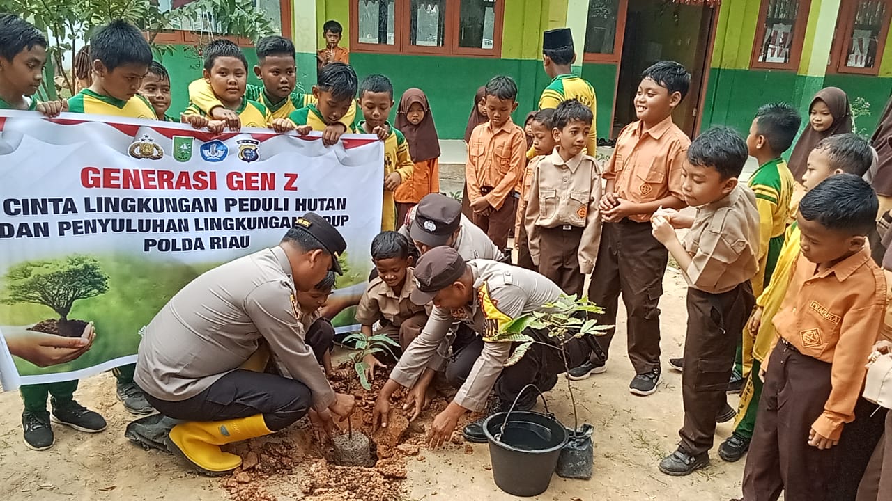 ROHIL (RA) - Polsek Rimba Melintang melaksanakan program Green Policing dengan menggelar kegiatan edukasi lingkungan dan penanaman pohon di SDN 007 Mukti Jaya, Kecamatan Rimba Melintang, Kabupaten Rokan Hilir (Rohil), Riau, Kamis (28/8/2025).