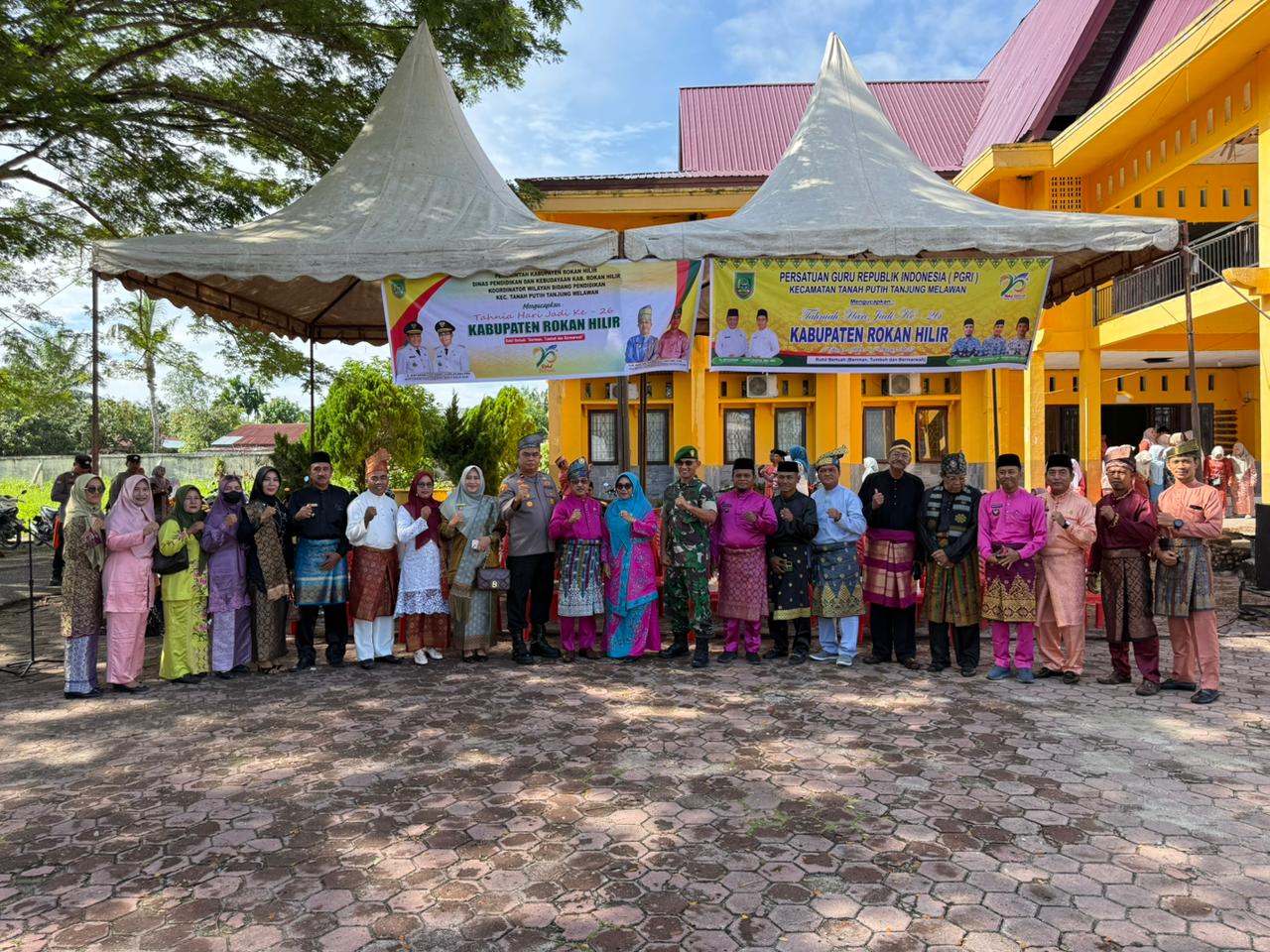 ROHIL (RA) - Semarak peringatan Hari Ulang Tahun (HUT) ke-26 Kabupaten Rokan Hilir (Rohil) berlangsung khidmat di halaman Kantor Camat Tanah Putih Tanjung Melawan (TPTM), Sabtu (4/10/2025).