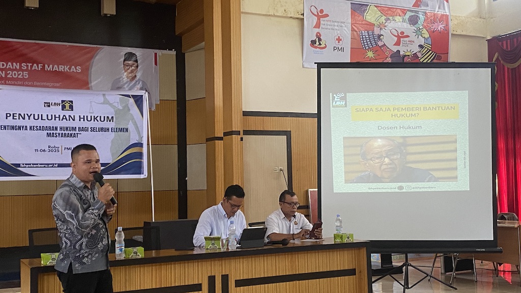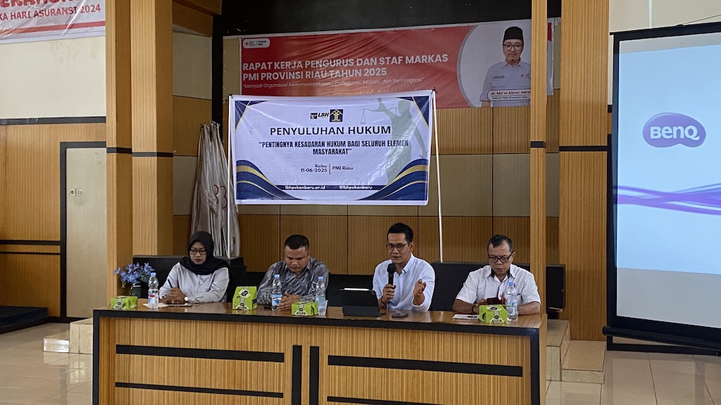 RIAU (RA) - Lembaga Bantuan Hukum (LBH) Pekanbaru melaksanakan kegiatan penyuluhan hukum bertajuk “Pentingnya Kesadaran Hukum Bagi Seluruh Elemen Masyarakat” di Markas Palang Merah Indonesia (PMI) Provinsi Riau, Rabu (11/6/2025).
