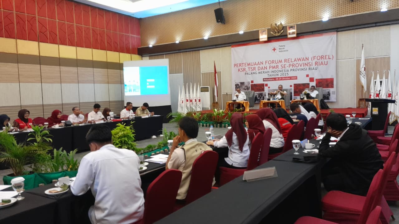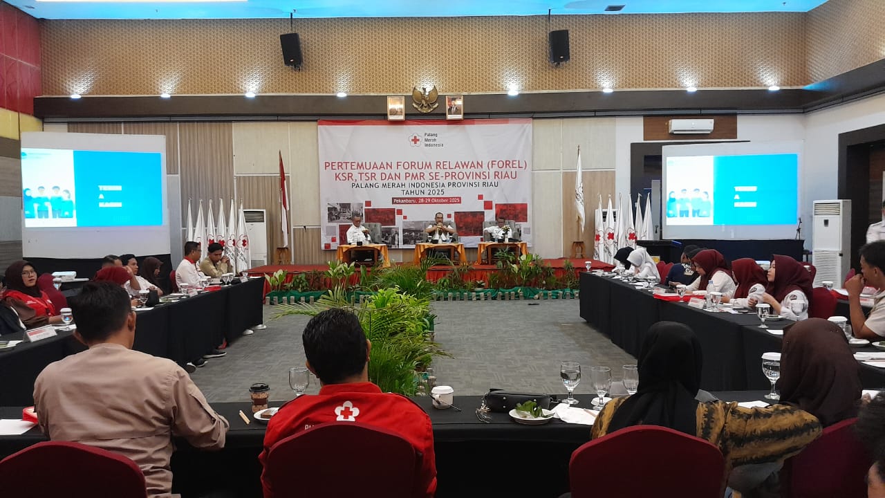 PEKANBARU (RA) - Palang Merah Indonesia (PMI) Provinsi Riau menggelar pertemuan Forum Relawan (Forel) yang diikuti oleh Korps Sukarela (KSR), Tenaga Sukarela (TSR), dan Palang Merah Remaja (PMR) se-Provinsi Riau.