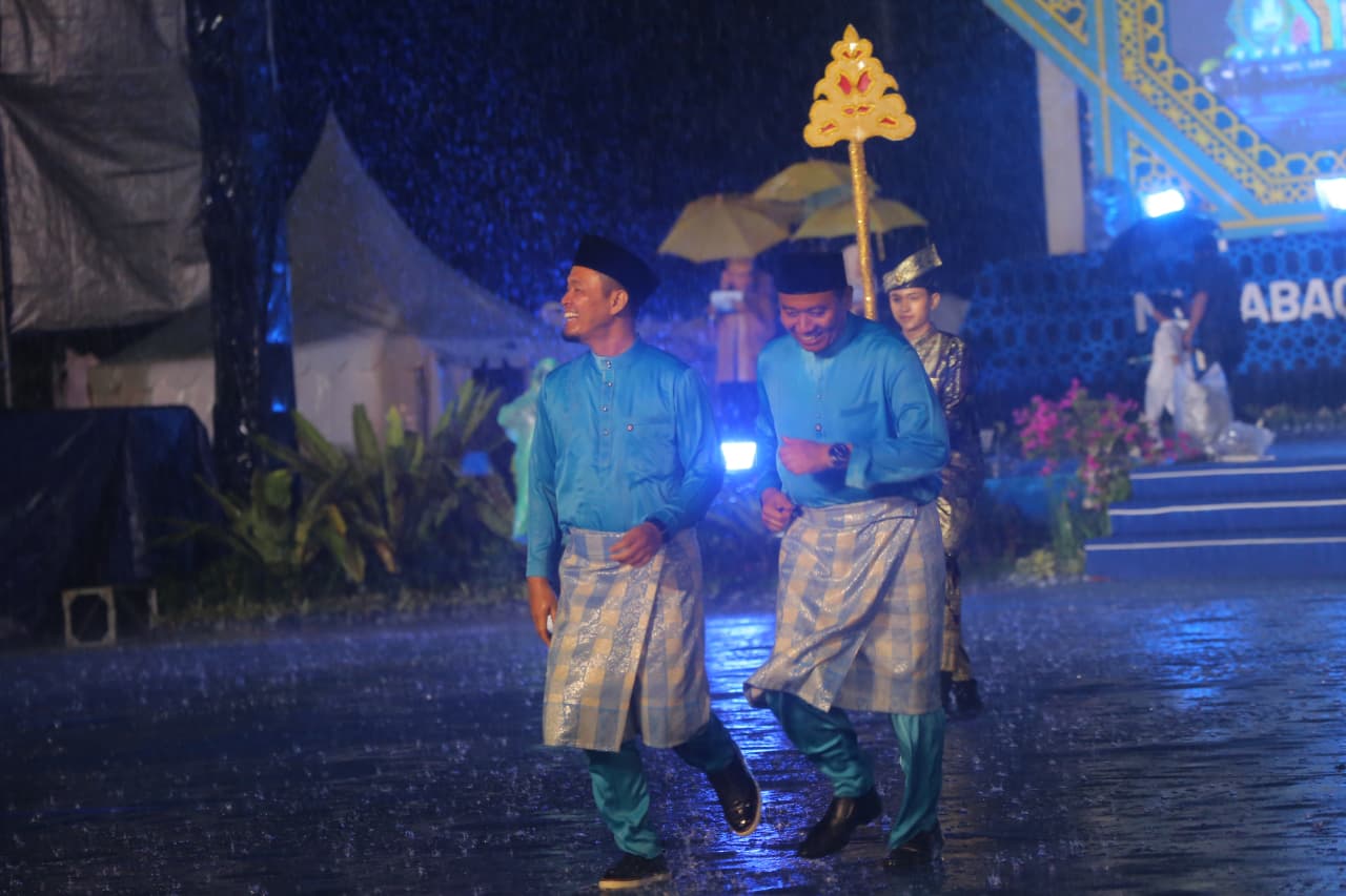 "Malam ini hujan, tapi suasananya penuh haru dan semangat. Kami bangga, karena sejak pagi lebih dari 30 ribu masyarakat ikut menyemarakkan MTQ ke-57 ini," ujar Agung.