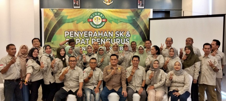 PEKANBARU (RA) - Ketua Umum Ikatan Keluarga Alumni (IKA) SMA Negeri 2 (SMANDa) Pekanbaru, H Amran SH MH, menyerahkan Surat Keputusan (SK) Pengurus IKA SMANDa Angkatan 1990 untuk masa bakti 2025-2028, Sabtu (8/11/2025).