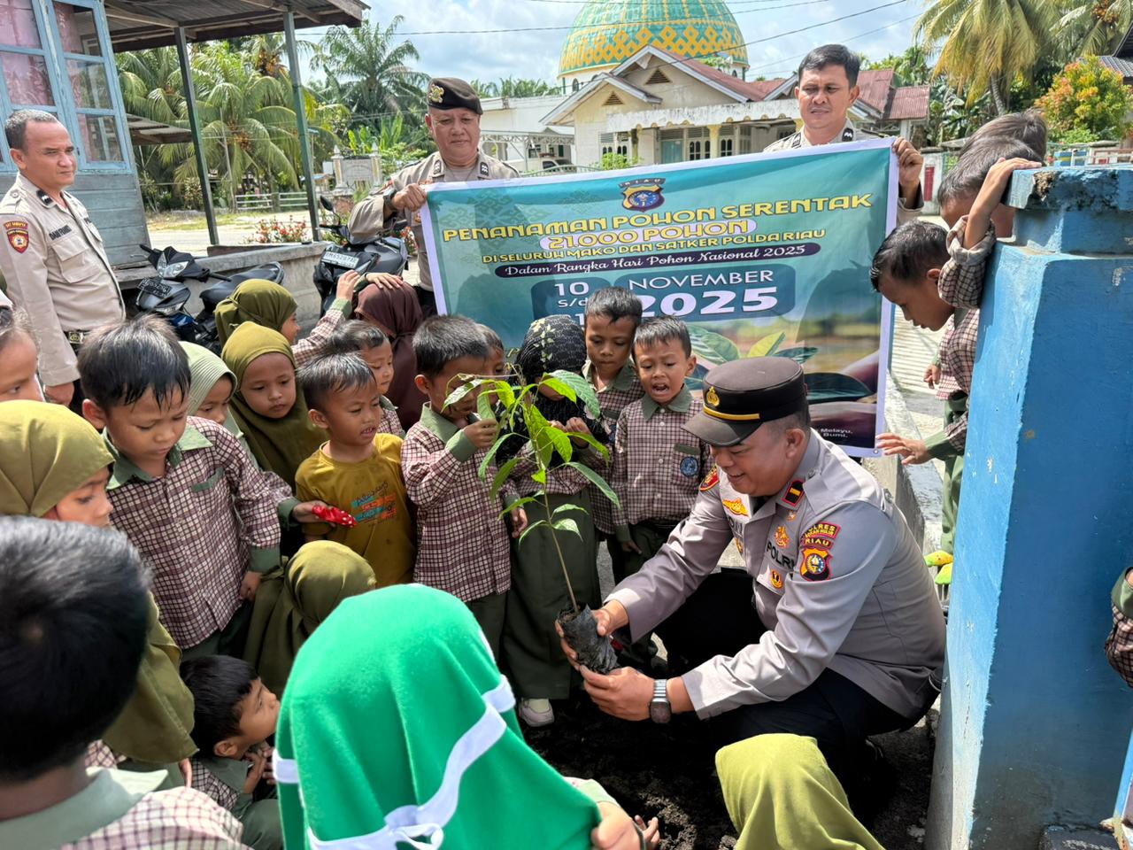 "Kegiatan ini merupakan bentuk penerjemahan arahan Kapolda Riau terkait Green Policing, yang kami wujudkan melalui edukasi dan penanaman pohon baik di sekolah maupun fasilitas publik," tambah Kapolsek.