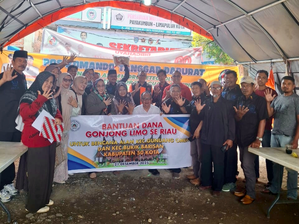 Gonjong Limo Se-Riau (Gonjong Limo Riau dan Siak) menyalurkan bantuan kemanusiaan dengan total nilai Rp40.530.000 ke posko induk bencana, Minggu (21/12/2025).
