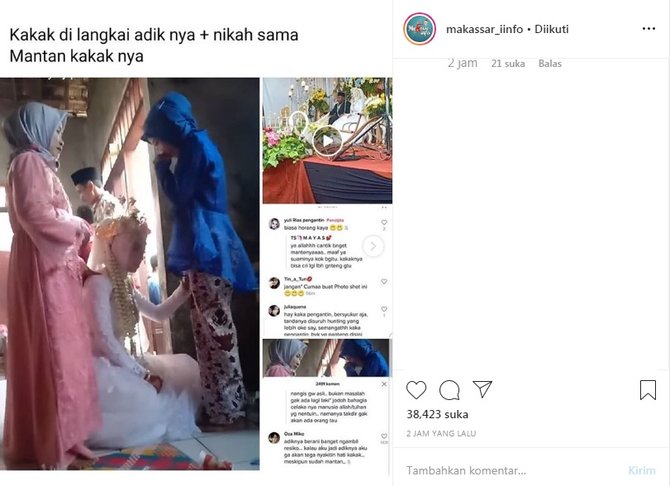 Dalam unggahan tersebut diketahui ternyata sang adik menikah melangkahi sang kakak. Nahasnya sang adik ternyata menikah dengan seorang pria yang tak lain adalah mantan dari sang kakak.