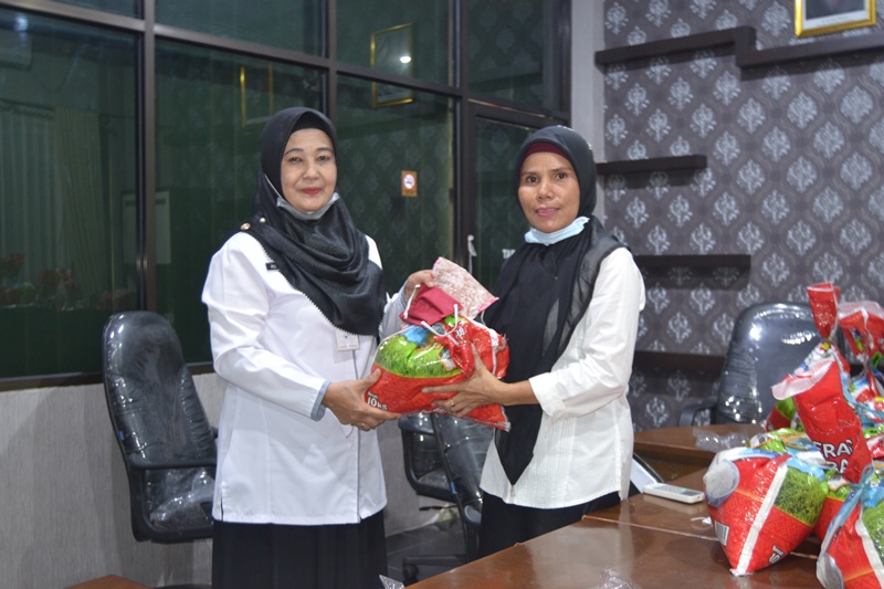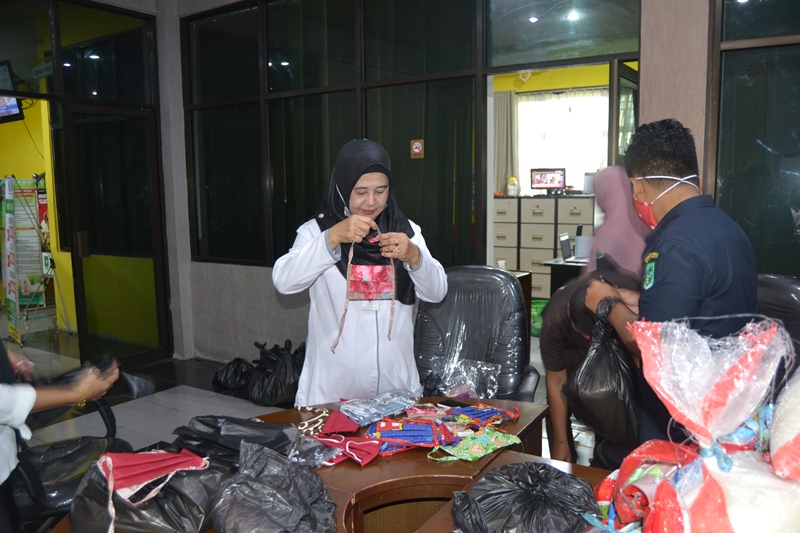 "Bantuan beras dan masker kain dari Industri Rumah Tangga (IRT) KUBE binaan Dinas Sosial Kabupaten Bengkalis, " Imbuh Martini.