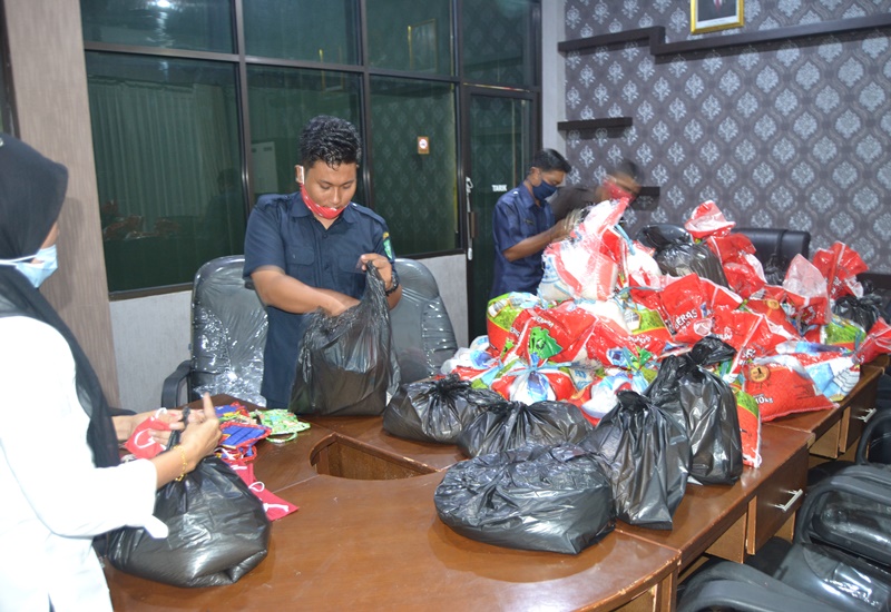 Berdasarkan pantauan dilapangan sebelumnya bantuan beras dan masker diserahkan kepada masyarakat di 15 desa tersebar di kecamatan Bengkalis dan Bantan tersebut telah dibungkus rapi untuk dibagikan.