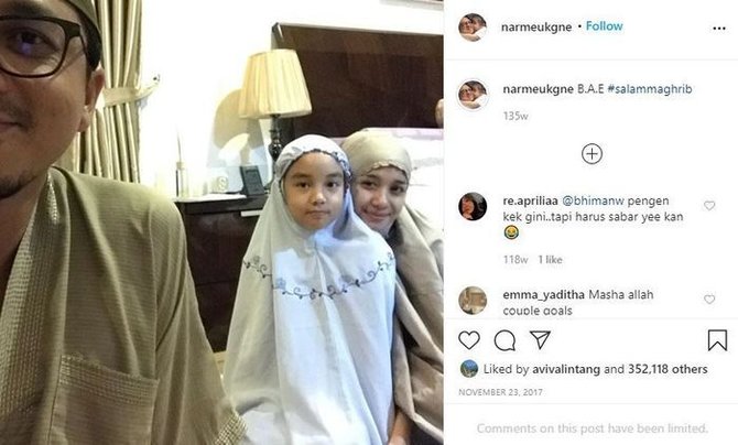 Foto lain yang membuat warganet 'meleleh' yakni saat Engku Emran memperlihatkan potretnya bersama Bella dan sang anak usai salat magrib. Potret tersebut diunggah pada 23 November 2017.