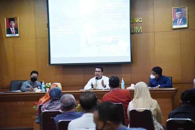 Sahrul Gunawan mengunggah potret dirinya saat memimpin rapat. Tampak Sahrul Gunawan memimpin rapat bersama ASN.