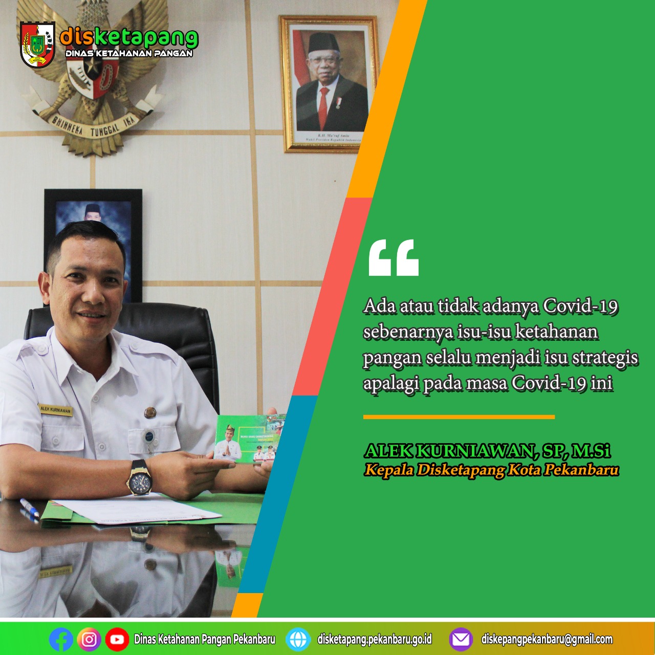 Pada akhir semester pertama tahun pertama pandemi bergulir, tepatnya 26 Juni 2020, bagi Alek Kurniawan adalah hari yang bersejarah, beliau mengucapkan sumpahnya selaku Kepala Dinas Ketahanan Pangan (Disketapang) Kota Pekanbaru yang akan memenuhi kewajibannya dengan sebaik-baiknya dengan memegang teguh janji jabatan untuk kemaslahatan stakeholder di bidang ketahanan pangan yang termutakhir diistilahkan Alek dengan sebutan dan tagar khusus #SobatPanganPku tercinta.