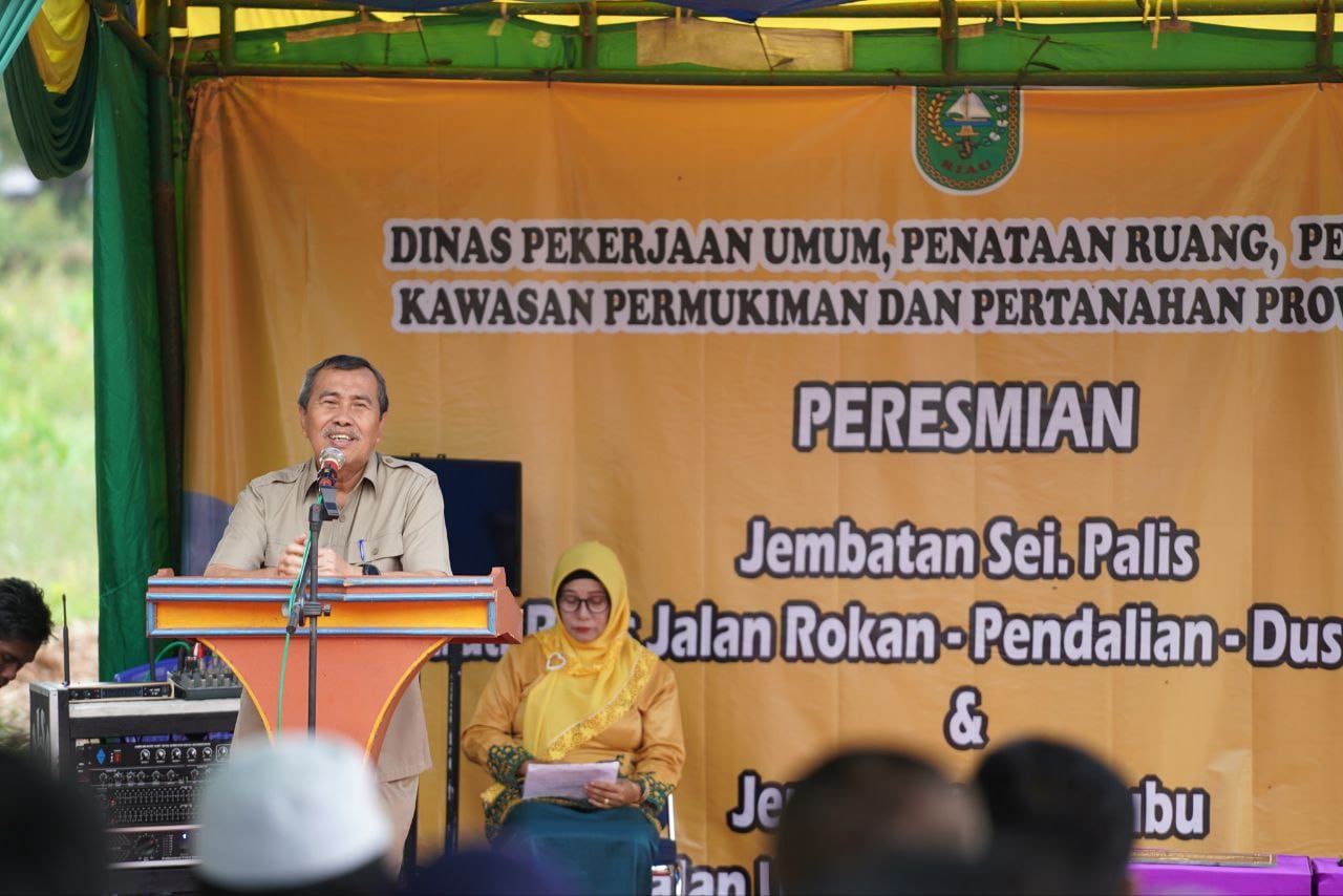 Riauaktual.com - Gubernur Riau (Gubri), Syamsuar resmikan Jembatan Sei Palis pada ruas jalan Rokan - Pendalian - Dusun Batas, dan Jembatan Sei Kubu pada ruas jalan Ujung Batu Rokan - Batas Sumatera Barat, pada Sabtu, (18/3/2023).