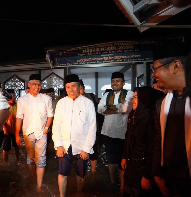 Riauaktual.com - Hujan yang mengguyur kota pekanbaru membuat banjir sejumlah ruas di jalan dan perumahan. Begitu juga lokasi Safari Ramadan Gubernur Riau (Gubri) Syamsuar di Masjid Nurul Yaqin Perumahan Graha Rawa Bangun, Jalan Suka Karya RW 06 Kelurahan Tuah Karya Kecamatan Tuah Madani, Kota Pekanbaru.