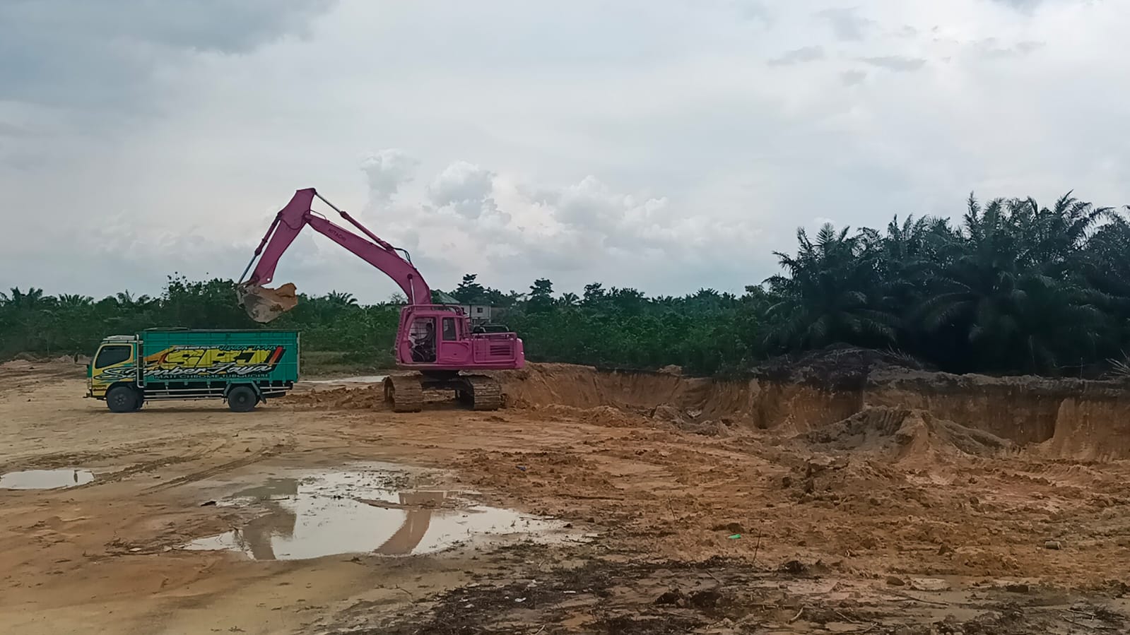 Di lokasi, terlihat escavator leluasa mengeruk tanah dan mobil truk yang mondar-mandir membawa hasil galian tersebut.
