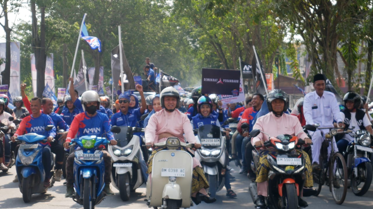 Usai berziarah, pasangan AMAn bersama rombongan langsung menuju Kantor KPU Kota Pekanbaru untuk melakukan pendaftaran. Menariknya, belasan ribu pendukung turut mengiringi mereka dalam perjalanan tersebut. Rombongan ini sempat berjalan kaki dari Jalan Datuk Setia Maharaja menuju Kantor KPU, mengubah suasana menuju kantor KPU menjadi lautan manusia yang penuh sesak.