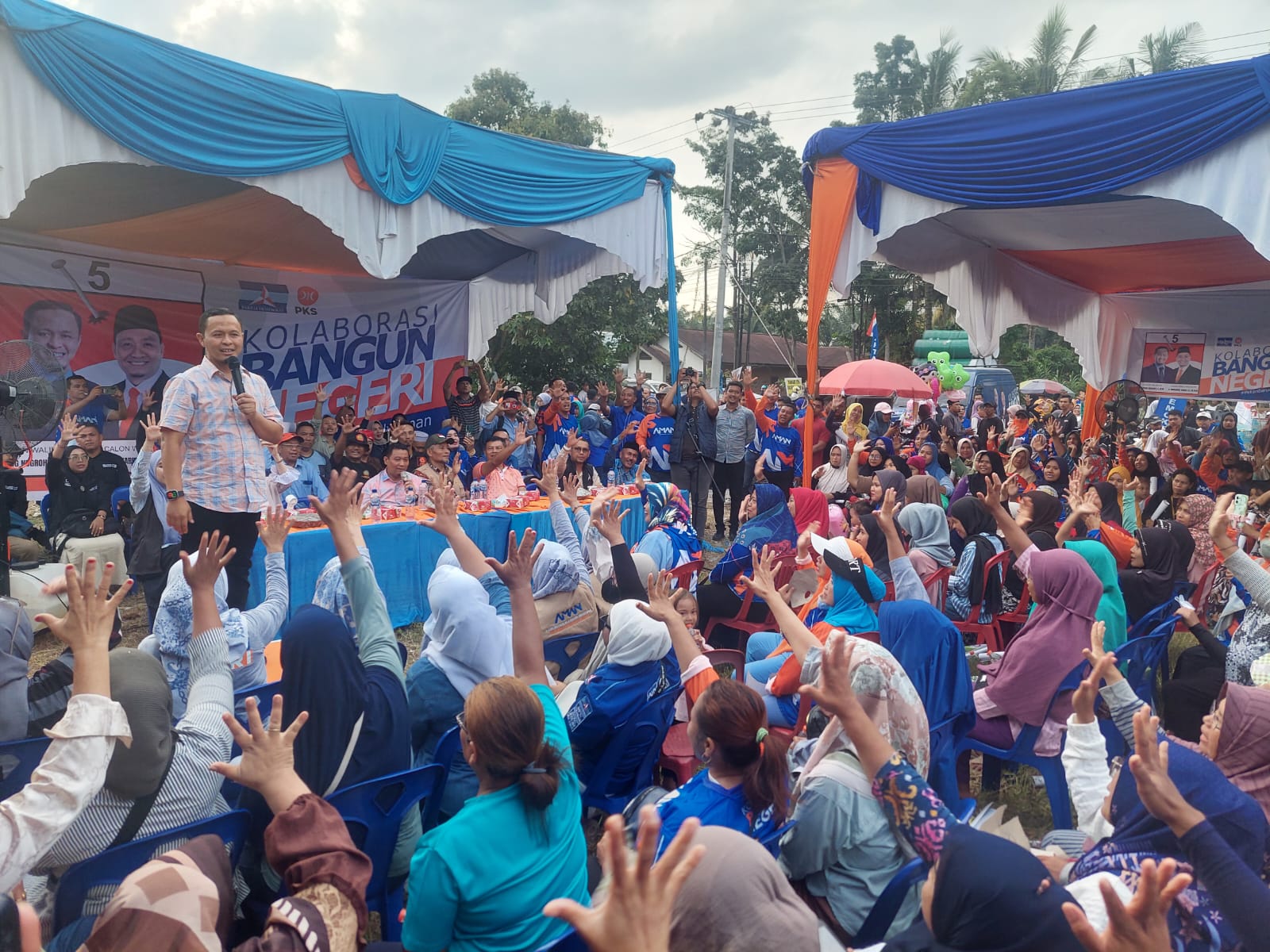 PEKANBARU (RA) – Seribuan warga antusias menghadiri kampanye dialogis pasangan calon Wali Kota dan Wakil Wali Kota Pekanbaru, Agung Nugroho dan Markarius Anwar, yang digelar di Kecamatan Kulim, Rabu (23/10).